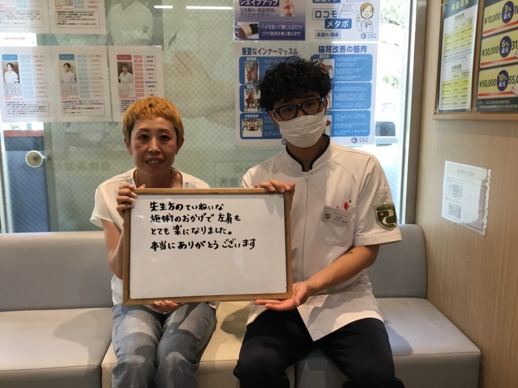 施術を続けていく内に、骨格の位置も整い筋肉の緊張も取れ、肩の痛みや可動域も良くなり、日常生活で困らない!と喜ばれていました。