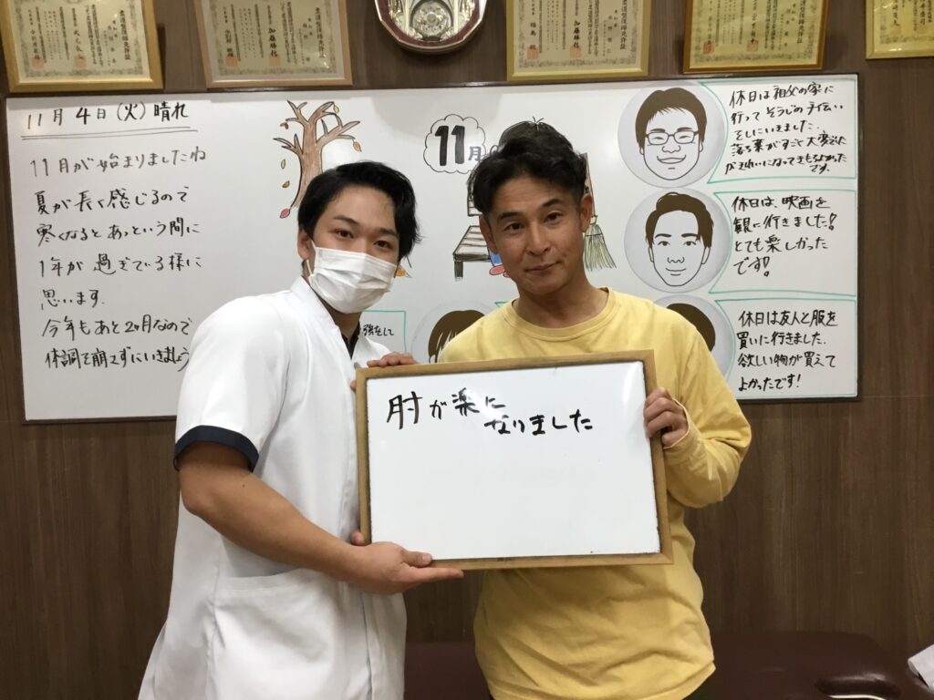 さて、こちらの患者さんは肘の痛みの症状で来院されました。