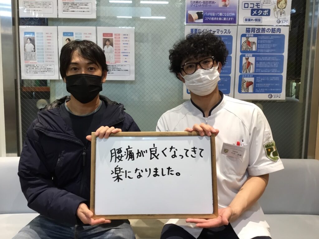 施術を続けていく内に、骨格の位置も整い筋肉の緊張も取れ、立っててお寝てても腰の痛みが和らだと日常生活でも気になる頻度が落ちたと喜ばれていました。