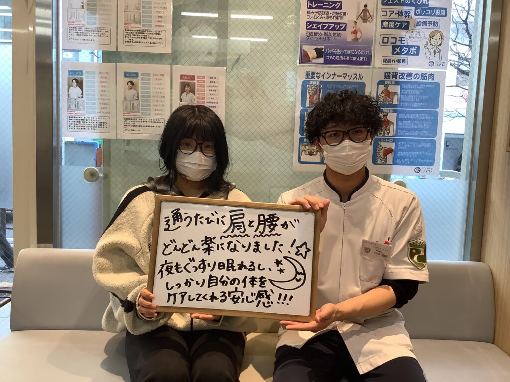 施術を続けていく内に、骨格の位置も整い筋肉の緊張も取れ、肩、腰の痛みも良くなり喜ばれていました。